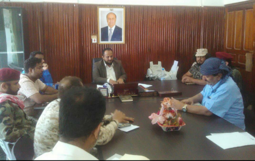حضر الاجتماع ، قائد الحزام الأمني بالمديرية فهمان حسن عطيري ، وقائد قوة الطوارئ محمد فائز مبجر ، ومديرا الشؤون القانونية بالمديرية وقاص السيد مدني ، والشؤون القانونية بمؤسسة الإتصالات بالمحافظة سامر كمال حسن .
