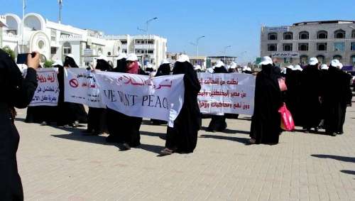 خرجت نساء عدن صباح اليوم في مسيرة سلمية تنادي بشعار " نريد السلام.. نريد السلام ..نريد السلام " نضمتها مجموعة " جنوبيات من أجل السلام " في ساحة العروض بخور مكسر بالعاصمة المؤقتة عدن .