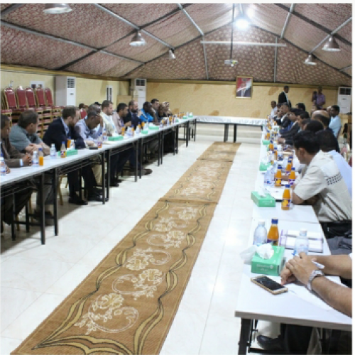 فور وصولهم صبيحة الأربعاء 28/3/2018م عقد بقاعة 24 إبريل بالمكلا اجتماع برئاسة وكيل أول حضرموت المقدم عمرو بن حبريش العليي ضم عدداً من مدراء المكاتب التنفيذية الخدمية ومدراء مكاتب الأمم المتحدة الزائرين لمدينة المكلا .