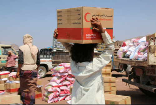 وعبر عن شكره وتقديره لدولة الامارات العربية المتحده حكومة وشعب وذراعهم للاعمال الانسانية الهلال الأحمر الاماراتي على مايقدموه من معونات غذائية ومساعدات بمختلف المجالات.