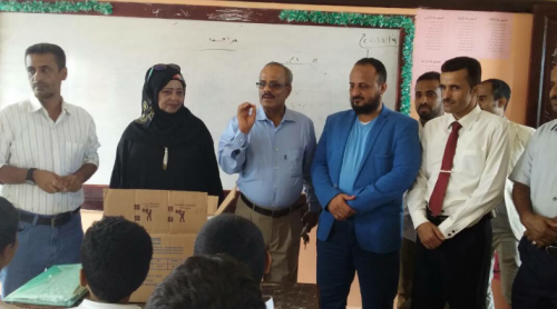 دشن وكيل وزارة التربية والتعليم لقطاع المناهج والتوجيه الدكتور صالح ناصر الصوفي ، ومعه ، مدير عام مديرية البريقة بمحافظة عدن هاني محمد اليزيدي ، مشروع التغذية المدرسية لعدد من مدارس المديرية ، والممول من برنامج الأغذية العالمي