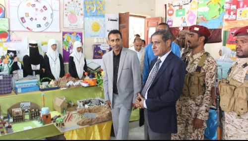 واستمع المحافظ ومعه وكيل المحافظة المساعد لشؤون الشباب فهمي باضاوي ومدراء عموم مديريات ساحل حضرموت إلى شرح من مدير مكتب وزارة التربية والتعليم بساحل حضرموت جمال سالم عبدون حول التحضيرات التي سبقت الإعداد للمعرض الذي دأب المكتب على تنظيمه سنوياً خلال الفصلين الدراسيين الأول والثاني للطلاب والطالبات في مختلف مدارس مديريات ساحل حضرموت ويحتوي هذا المعرض على أكثر من ألفي وسيلة تعلمية وتجارب علمية من أعمال وإبداعات ألف طالبة بمساعدة وإشراف من المعلمين والمعلمات .