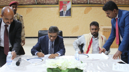 حضر التوقيع وكيل محافظة حضرموت الشيخ سالم بن شرمان ووكيل المحافظة لشؤون الساحل والهضبة الدكتور سعيد العمودي والوكيل المساعد لشؤون الشباب فهمي باضاوي وقيادات مؤتمر حضرموت الجامع .