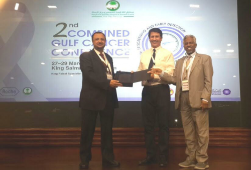 وقال المحافظ إن التكريم الخليجي الذي حظيت به المؤسسة في حفل رسمي بالرياض يعكس الجهود المتميزة للمؤسسة في مجالي مساندة المرضى وتوعية المجتمع .