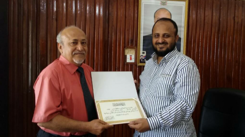 كرم مدير عام مديرية البريقة بمحافظة عدن هاني محمد اليزيدي ، مدير مكتب الثقافة السابق بالمديرية أحمد عبدالله حسين الميسري ، تقديراً وعرفاناً لجهوده التي بذلها خلال فترة عمله في المكتب .