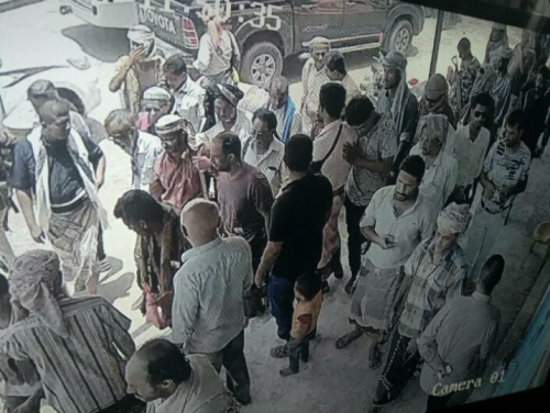 حيث قبل الـ " اليزيدي" قدومه وتحكيمه في كل ما حدث من الاعتداء والتعدي على حرمة المكان من قبل المدعو عبدالرحمن الشنيني ورد الاعتبار لليزيدي في اطلاق النار والشروع بالقتل وإصابة حارسي محل الصرافة .