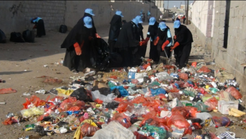 دشن صباح اليوم محمد نصر شاذلي وكيل محافظة عدن في مدرسة الغافقي بمنطقة البساتين مديرية دار سعد حملة نظافة لرفع المخلفات ضمن برنامج النقد مقابل العمل - رفع المخلفات في منطقة البساتين والذي تنفذه منظمة أدرا بالتنسيق مع صندوق النظافة والتحسين بعدن .
