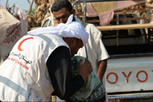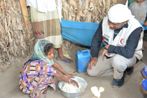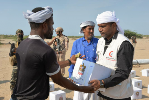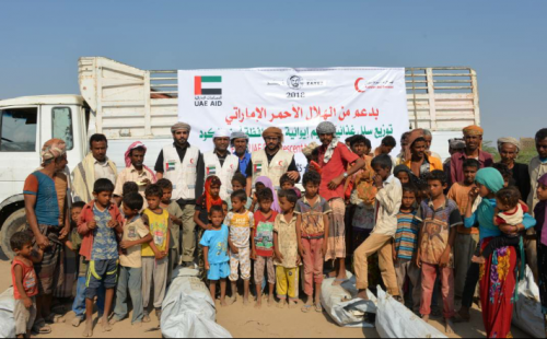 وحضر التوزيع مدير الهلال الأحمر الإماراتي المهندس سعيد آل علي والوفد المرافق له، ويأتي هذا الدعم في عام زايد 2018 الذي تسعى هيئة الهلال الأحمر الإماراتي لتقديم العون لكافة المحتاجين والمتضررين من الحرب.