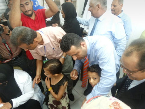 دشن صباح اليوم الدكتور على الوليدي وكيل وزارة الصحة لقطاع الرعاية الأولية والدكتور رشاد شايع وكيل محافظة عدن بمديرية خورمكسر حملة التحصين ضد مرض الكوليرا والتي ستستمر من ٦-١٠ من الشهر الجاري .