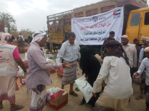 بدأ فريق الهلال الأحمر الإماراتي اليوم توزيع 700 سلة غذائية على النازحين من محافظتي الحديدة وتعز في محافظة أبين وذلك بعد أقل من 24 ساعة من تفقد الفريق لأوضاع النازحين والتعرف على احتياجاتهم.