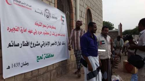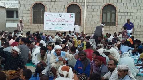 أقامت هيئة الهلال الأحمر الإماراتي إفطارا جماعيا للأهالي والنازحين في منطقة البيطرة "الفيوش" بمديرية تبن في محافظة لحج ضمن برنامج مشروع " إفطار صائم" الذي ينفذه خلال أيام الشهر الفضيل بدعم من حرم سمو الشيخ محمد بن حمد بن محمد الشرقي ولي عهد الفجيرة سمو الشيخة لطيفة بنت محمد بن راشد آل مكتوم.