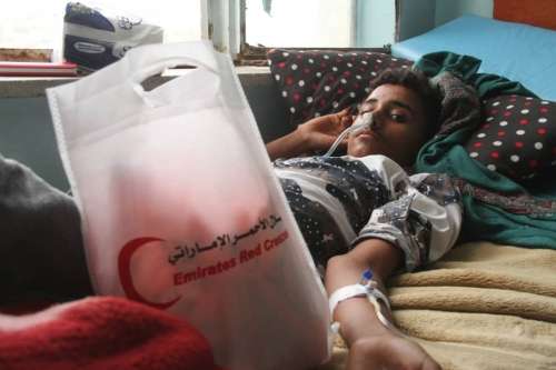مقدرين دور الهلال الأحمر الإماراتي وجهوده التي يقوم بها في مدينة تعز المنكوبة.