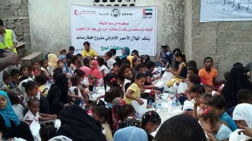 نظم فريق هيئة الهلال الأحمر الإماراتي في لحج اليوم إفطارا جماعيا للأيتام بساحة جمعية أيادي الخير التنموية بمدينة الحوطة المحروسة التابعة لمحافظة لحج وذلك في إطار مشروع إفطار الصائم الذي تنفذه " الهيئة " خلال شهر رمضان المبارك بمكرمة من قرينة سمو الشيخ محمد بن حمد بن محمد الشرقي ولي عهد الفجيرة سمو الشيخة لطيفة بنت محمد بن راشد آل مكتوم وحضر الإفطار 440 من الأمهات والأيتام من مختلف مناطق المديرية.