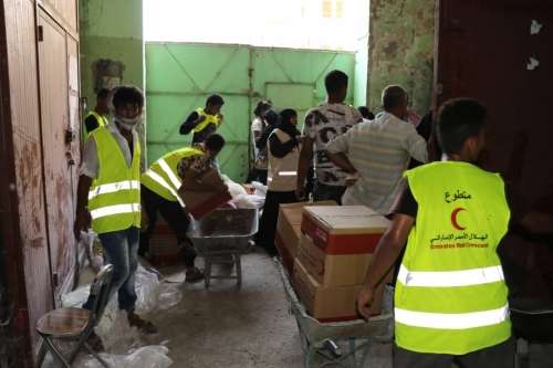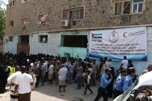 قدمت هيئة الهلال الأحمر الإماراتي 5 آلاف سلة غذائية لأبناء مديريات مدينة عدن والنازحين إليها من محافظتي تعز والحديدة.. في إطار جهودها لدعم الأشقاء في اليمن وضمن مشاريعها في عام زايد.