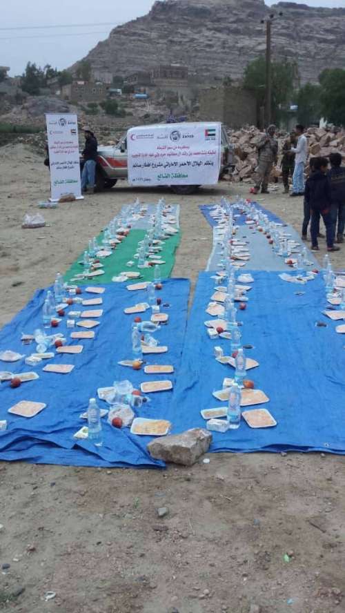 تواصلا لمشروع إفطار الصائم خلال أيام شهر رمضان المبارك وبدعم من سمو الشيخة لطيفة بنت محمد بن راشد آل مكتوم قام فريق الهلال الأحمر الإماراتي أمس الثلاثاء بتوزيع 300 وجبة إفطار وإقامة إفطار جماعيا للأسر الفقيرة بمديرية الشعيب بمحافظة الضالع.