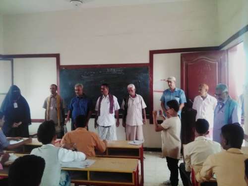 بحضور الاخ انيس محمد ناصر مدير عام المديرية والعميد مبارك سعيد رئيس المجلس الانتقالي في المديرية والاستاذ عبد الحكيم احمد فضل مدير مكتب التربية دشن صباح اليوم الأحد 1 يوليو 2018 م في مدرسة الصمود مديرية الملاح محافظة لحج امتحانات اتمام الشهادة الثانوية للعام 2017م-2018 م .
