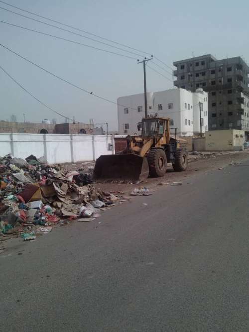 دشن المدير التنفيذي لصندوق النظافة والتحسين بعدن المهندس قائد راشد اليوم حملة النظافة لرفع المخلفات بمنطقة الممدارة بعدن .