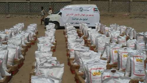 وزعت هيئة الهلال الأحمراليوم الفي سلة غذائية على الأهالي في منطقة العند التابعة لمديرية تبن بمحافظة لحج .