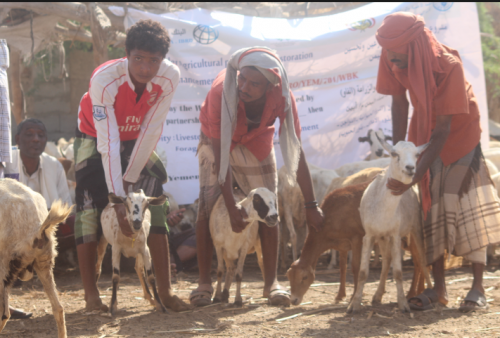 الجدير بالذكر ان مشروع دعم وإعادة تأهيل صغار المزارعين في محافطات " أبين - تعز - الحديدة " يهدف إلى توفير الاستقرار النسبي للأسر النازحة والمضيفة وكذا توفير الأمن الغدائي والاستقرار للأسر التي ترعى الماشية والدجاج من خلال توزيع والماشية والدجاج لهم.