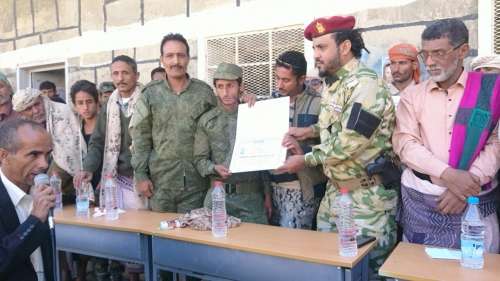 ونقل العقيد علي عسكر اليزيدي أركان اللواء الأول دعم وإسناد تحيات القائد منير ابو اليمامة الذي حضر نيابة عنه مضيفاً ان الشهيد عبدالله اليزيدي سقط وهو يخوض معركة ضد عناصر التطرف والإرهاب في جبل اليزيدي بيافع بعد ان قضى على زعيم الإرهاب أحمد عبد النبي.