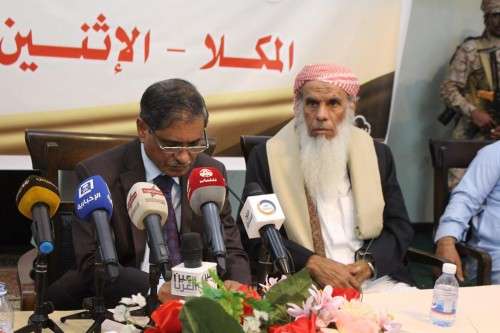 وأشار المحافظ إلى أن أننا لا نريد بعد اليوم أن تختصر مهمة المشائخ والأعيان وكل الشخصيات الاجتماعية في محافظتنا في مهمة القيام بالاصلاح بين المواطنين وهذا ليس تقليل ولكننا نشعر بأن مسؤولياتهم اليوم قد كبرت بالتزامن مع نشوء الظرف الجديد "ظاهرة الإرهاب" الذي لم يعد الحكر في محاربتها على السلطة واجهزتها لكنها مسؤولية مجتمعية يشترك فيها كل الخيرين حتى نتمكن من القضاء على هذه الآفة ودحرها من حضرموت وإلى الأبد.