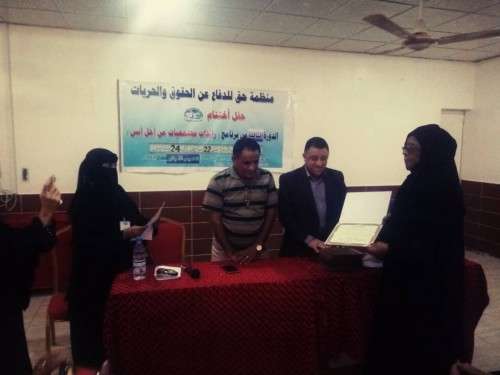 بحضور السيد مهدي الحامد الأمين العام للمجلس المحلي لمحافظة أبين أقامت منظمة حق للدفاع عن الحقوق والحريات في قاعة نور بزنجبار حفلا ختاميا للدورة التدريبية والتأهيلية الثالثة والأخيرة من برنامج رائدات مجتمعيات من أجل أبين