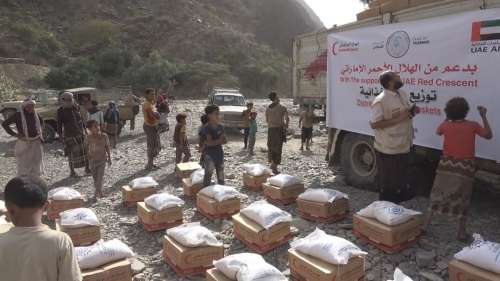 وتشمل المساعدات الإنسانية المقدمة من الهلال الإماراتي 250 سلة غذائية.