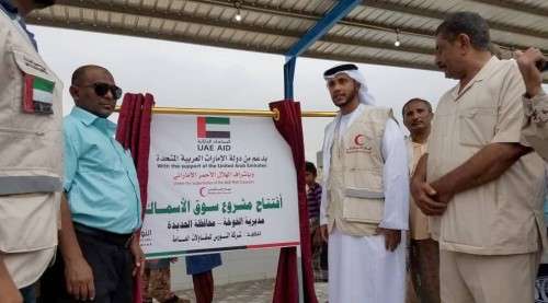 افتتحت دولة الإمارات ممثلة بذراعها الإنسانية " الهلال الأحمر " اليوم مشروع سوق الأسماك في مديرية الخوخة التابعة لمحافظة الحديدة بعد تزويده بالتجهيزات والآلات .