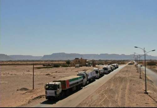 سيرت هيئة الهلال الأحمر الإماراتي صباح اليوم قوافل مساعدات إنسانية تحمل على متنها اكثر من ٣٠٠ طن الى مديرية نصاب ومنطقة خورة  بمحافظة شبوة وذلك عقب تأمينها  وطرد عناصر الإرهاب منها .