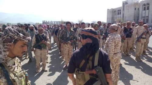 وأضاف سكرة اليوم تم ارسال كتيبتين من مقاتلي أفراد اللواء الأول مقاومة ليساندوا إخوانهم في الجبهات الذي يسطرون ملاحم بطولية في التصدي للمليشيات الحوثية، لافتا بان الحوثيين سيهزموا ويتم القضاء عليهم وعلى مشروعهم الفارسي بالمنطقة ولن يكون لهم مكان بين الشرفاء من أبناء هذا الوطن.