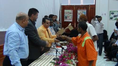 نظم صندوق النظافة وتحسين المدينة بعدن، حفلاً تكريمياً للعمال المبرزين، بمناسبة اليوم العالمي للعمال، برعاية محافظ المحافظة أحمد سالم ربيع، رئيس مجلس إدارة الصندوق، وتحت شعار "بكم وبعملكم يرتقي مجتمعكم".