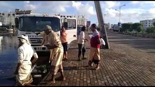 تواصل فرق الطوارئ التابعة لمؤسسة المياه والصرف الصحي بمديرية خور مكسر عمليات شفط لمياه الامطار المتحقنة بعدد من بشوارع وأحياء مديرية خور مكسر .