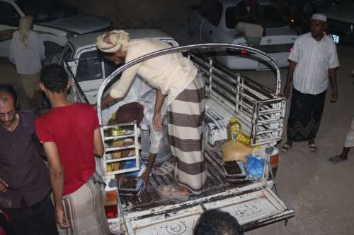 حيث اوضح المنسق الميداني بالمديرية / محمد حسن باكويري بأن عدد الأسر المستهدفه 929 اسرة من كافة مناطق وقرى المديرية و قد شملت المساعدات الأنسانية المواد التالية: