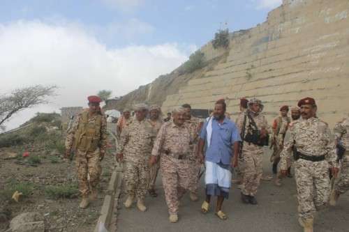 تفقد قائد المنطقة العسكرية الرابعة اللواء فضل حسن محمد العمري اليوم الجمعة، أبطال الجيش الوطني في جبهة ثرة ومواقعها الامامية شمالي محافظة ابين.