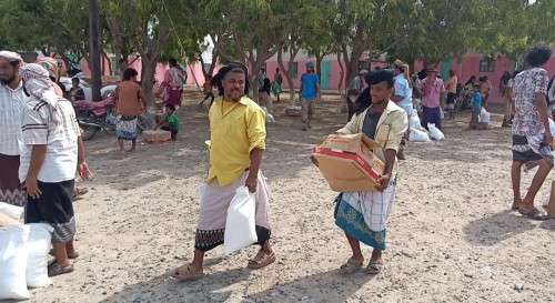 وتم توزيع المواد، الغذائية في منطقة حصن شداد في مدينة زنجبار عاصمة محافظة أبين.