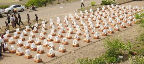 واستهدفت الإغاثة النازحين من مناطق الصراع (حجر والأزارق وقعبطة) وبلغت السلل التي تم توزيعها 1200 سلة غذائية وزعت بين المناطق المحتاجة.