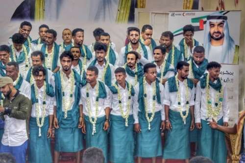 وتمت المراسم بحضور مهدي الحامد نائب محافظ أبين وعدد من المسؤولين اليمنيين وممثل هيئة الهلال الأحمر الذي أشرف على مراسم الزواج والترتيبات الخاصة به، بمشاركة العرسان وأسرهم ومعارفهم وجمع غفير من أهالي المحافظة.