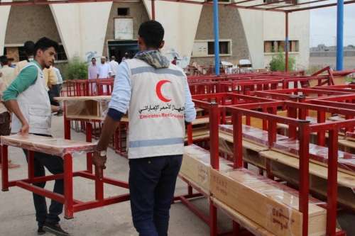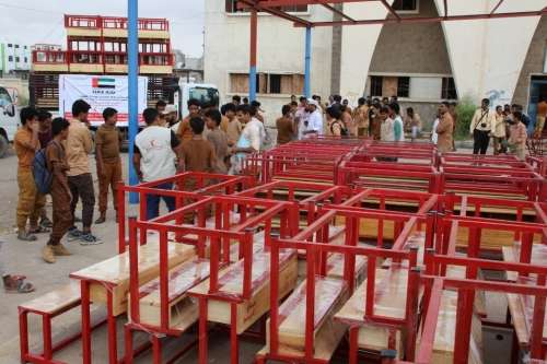 استمراراً لدعم العملية التعليمية الذي تقوم به دولة الإمارات في اليمن وضمن إعادة تأهيل البنية التحتية للمدارس وتأثيثها قدمت هيئة الهلال الأحمر الإماراتي كراسي مدرسية لثانوية القدس في منطقة الشعب بمديرية البريقة بمحافظة عدن.