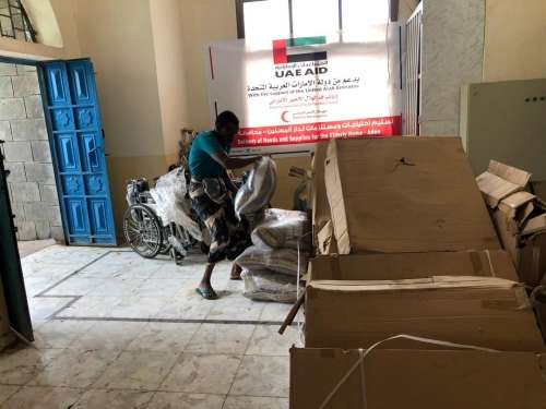 قدمت هيئة الهلال الأحمر الإماراتي، مساعدات إنسانية "غذائية وكراسي" وغيرها من المواد التي يحتاجها قاطنوا دار العجزة والمسنين بعدن، وذلك ضمن حملة الاستجابة العاجلة التي تنفذها دولة الإمارات العربية المتحدة في عدن وعدد من المحافظات اليمنية المحررة .