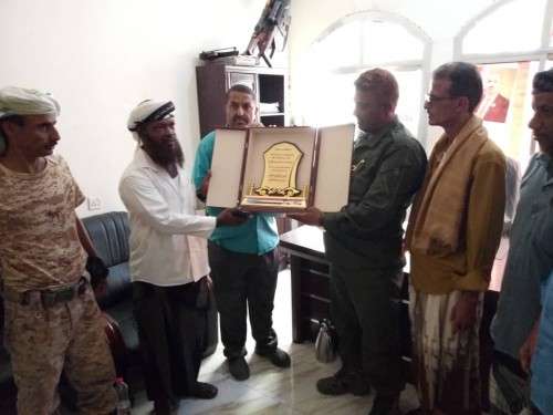 وقام كل من الاستاذ صالح محمود مستشار محافظ لحج والعميد احمد قاسم طماح مستشار محافظ لشوون الامن والاخ محمد سلمان مدير مكتب اسر الشهدا والجرحى العقيد محمد الصامتي مدير مكتب مدير امن المحافظة بتكريم العميد صالح السيد مدير عام امن لحج والاخ عبد الناصر الكلدي عن اسر الشهداء بلحج.