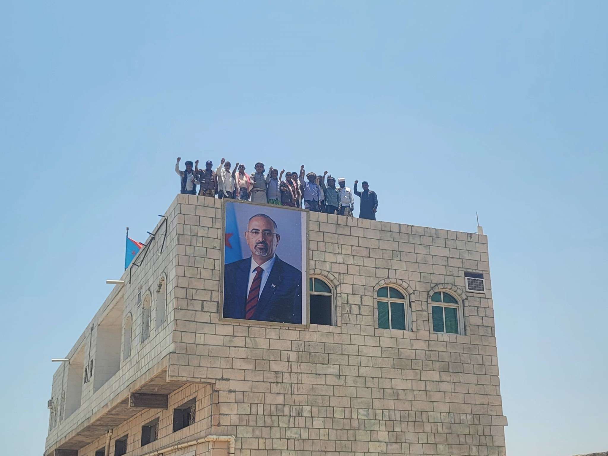 انتقالي سقطرى يرفع صورة الرئيس القائد عيدروس الزُبيدي على مقر القيادة المحلية