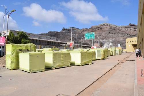 تسلمت إدارة مستشفى عدن العام المعدات الخاصة 8 حاويات الخاصة بمعدات التكيف المركزي والمقدمة الصندوق السعودي للتنمية بتكلفة اجمالية 29 مليون دولار لتكملة إعادة الترميم والتأهيل لمستشفى عدن وإنشاء مركز القلب .