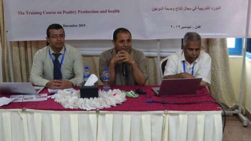 من جانب اخر نفذت منظمة الاغذية والزراعة للامم المتحدة الفاو ، اليوم بعدن ، فعاليات الدورة التدريبية الخاصة بإنتاج وصحة الدواجن ، بمشاركة 26 من محافظة الضالع على مدى يومين .
