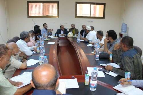عقد اجتماع بعدن برئاسة نائب وزير الصناعة والتجارة سالم سلمان الوالي مع رئيس جمعية الصرافين ومالكي شركات ومحلات الصرافة لمناقشة تحديث المعلومات وتراخيص السجلات والأسماء والعلامات التجارية .