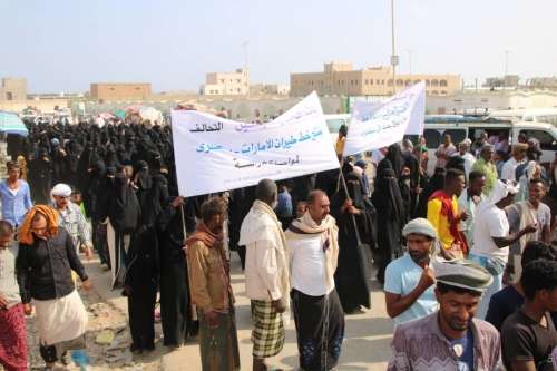خرج أبناء سقطرى في وقفة أحتجاجية شعبية بكافة المكونات السياسية والاجتماعية والمشائخ والأعيان وقطاع المرأة والشباب والفتيات من مختلف نواحي أرخبيل سقطرى أمام بوابة مكتب التحالف السعودي للمطالبة بفك الحصار وإعادة الطيران المدني الأماراتي رويل جت.