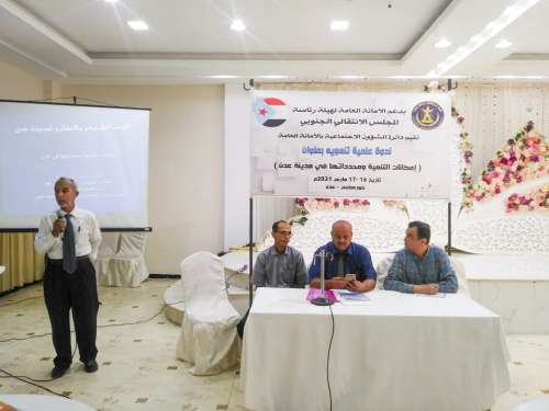 اختتمت دائرة الشؤون الاجتماعية في الأمانة العامة لهيئة رئاسة المجلس الانتقالي الجنوبي، اليوم الأربعاء، الندوة العلمية التي دشنتها يوم أمس حول "إمكانية التنمية و محدداتها في مدينة عدن".