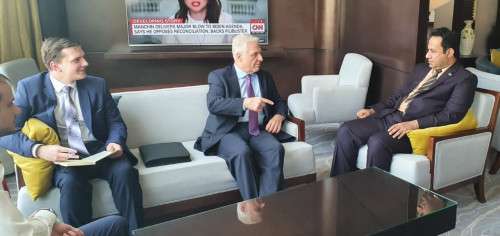 حضر اللقاء الملحق السياسي في السفارة الروسية السيد بافل كوروليف، والسكرتير السياسي السيد يوري ميدفيديف، والسيد مهيب عبدالله .