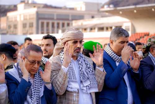 أدّى الرئيس القائد عيدروس قاسم الزُبيدي رئيس المجلس الانتقالي الجنوبي، القائد الأعلى للقوات المسلحة الجنوبية، اليوم الخميس، صلاة عيد الفطر المبارك مع جموع المصلين في ملعب الشهيد الحبيشي بمدينة كريتر بالعاصمة عدن.