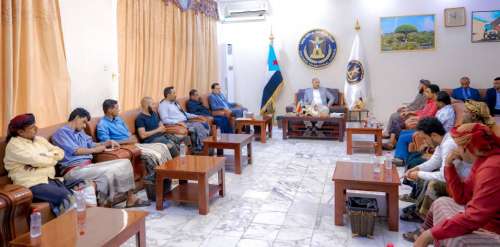 التقى الرئيس القائد عيدروس الزُبيدي رئيس المجلس الانتقالي الجنوبي، اليوم السبت، عددا من أبناء محافظة أرخبيل سقطرى يتقدمهم المهندس رأفت الثقلي رئيس الهيئة التنفيذية للقيادة المحلية للمجلس بالمحافظة.