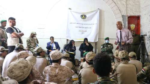 دشنت دائرة حقوق الإنسان في الأمانة العامة لهيئة رئاسة المجلس الانتقالي الجنوبي، ورشة توعوية لمنتسبي قوات العاصفة بمعسكر 20 يونيو في العاصمة عدن.